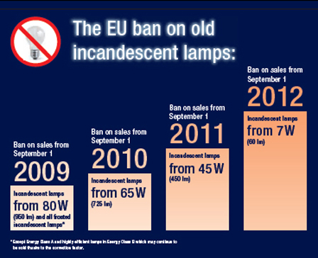 Μια ενδιαφέρουσα απόφαση από την Ευρωπαϊκή Επιτροπή έρχεται να μας αλλάξει τα φώτα -κυριολεκτικά! Συγκεκριμένα, η Επιτροπή απόφάσισε ότι ως το 2012 θα καταργηθεί οριστικά η χρήση των λαμπτήρων πυρακτώσεως , οι οποίοι θεωρούνται ιδιαιτέρως ενεργοβόροι. Οι λαμπτήρες αυτοί θα αντικατασταθούν από τους αποκαλούμενους ?συμπαγείς λαμπτήρες φθορισμού? (CFL), και η αρχή της κατάργησης θα γίνει τον ερχόμενο Σεπτέμβριο, οπότε και θα καταργηθούν οι λαμπτήρες των 100 Watt.